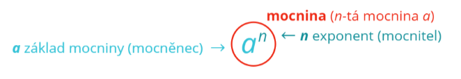 Obecně se mocnina zapisuje jako a \cdot a \cdot a \cdot \ldots \cdot a=a^{n}( čti: „a na entou“), kde n je počet (kolikrát se v zápisu nachází) a.