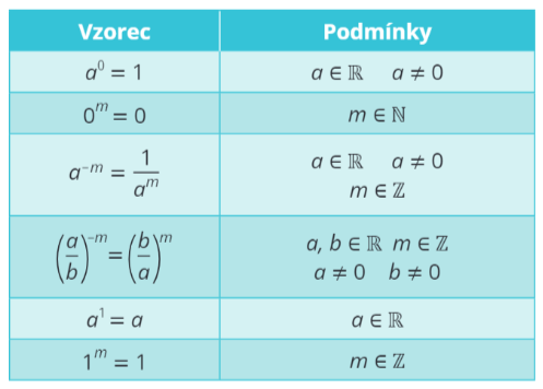 Pravidla pro počítání s mocninami s celým mocnitelem:
