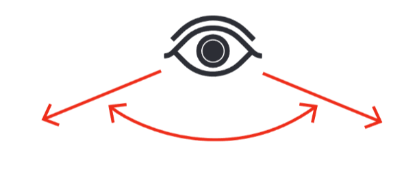 Úhel periferního vidění je rozpětí, pod kterým vidíš nějaký předmět na šířku. Udává se zleva doprava.