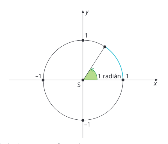 Radián je jednotka velikosti úhlu (stejně jako stupeň). Jedná se o středový úhel, který přísluší na jednotkové kružnici oblouku o délce 1 a označuje se „rad”, viz obrázek níže. Jednotková kružnice je kružnice s poloměrem jedna jednotka.