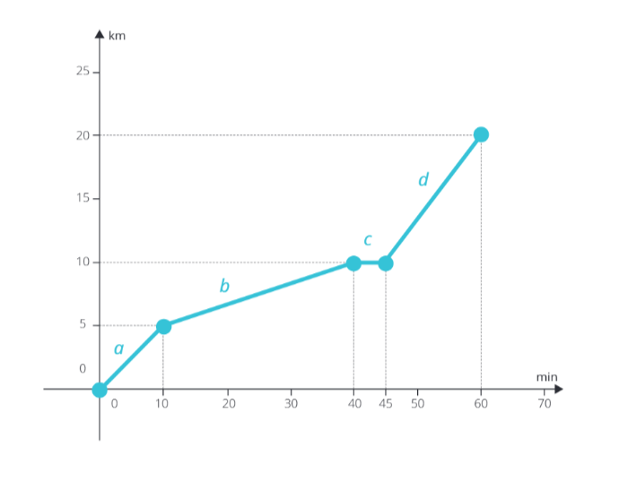 Pan František Spadnezkola se zúčastnil cyklistického závodu. Obrázek znázorňuje závislost počtu ujetých kilometrů na čase uvedeném v minutách. Byl úsek d stoupání, nebo klesání?