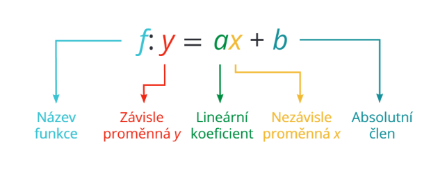 Obecný tvar lineární funkce vypadá takto: