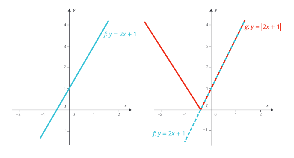 Pro f: y=2 x+1 ti vznikne jeden graf, ale pro g: y=|2 x+1| úplně jiný, jak vidíš na následujících obrázcích.