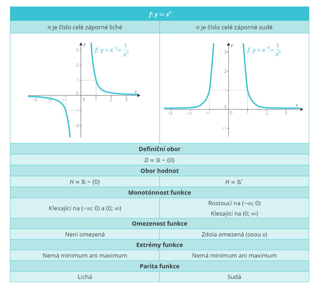 Jaké vlastnosti vlastní mocninné funkce s celočíselným záporným exponentem?
