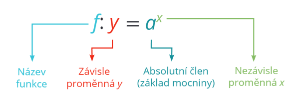 Exponenciální funkce má podobný tvar jako mocninná funkce. Předpis exponenciální funkce je: