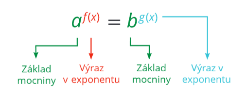 kde a, b jsou reálná čísla větší než nula a nazývají se základy mocnin. Za f(x) a g(x) se skrývají určité výrazy, z nichž alespoň jeden obsahuje jednu neznámou. Příkladem exponenciální rovnice je 2^{x}=8.