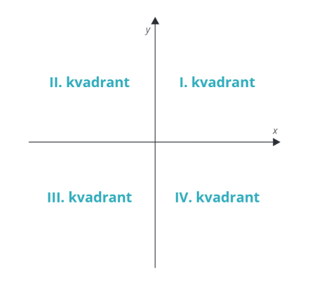 Vodorovná přímka se standardně značí jako x a na ni kolmá přímka jako y. Bod, kde se tyto přímky protínají, se nazývá počátek. Značí se jako O , tj. souřadnice [0; 0]. Počátek rozděluje tyto osy na kladnou (napravo a nahoře) a zápornou (vlevo a dole) poloosu. Osy x a y rozdělují rovinu na kvadranty.