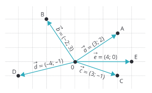 Pokud vede cesta směrem vlevo, bude první souřadnice vektoru záporná, např. cesta z bodu O do bodu B je dána vektorem \overrightarrow{O B}=\vec{b}=(-2 ; 3), protože se šlo o dvě jednotky vlevo a o tři jednotky nahoru. Samozřejmě pokud se jde dolů, bude druhá souřadnice záporná.