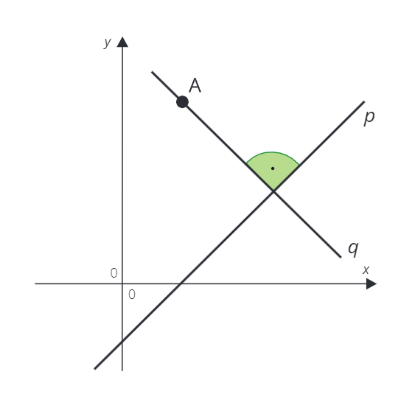Jakmile znáš rovnici přímky q, můžeš spočítat průsečík obou přímek, čímž získáš druhý bod k bodu A. Nyní vzdálenost bodu od přímky je vzdálenost těchto dvou bodů.