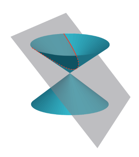 Parabola je třetí z řady kuželoseček, kterou se v této kapitole učíš. Dostaneš ji, pokud řízneš kužel rovinou rovnoběžnou s hranou kužele.