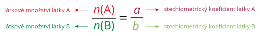 Zde na levé straně rovnice jsou látková množství látek A a B a na druhé jejich stechiometrické koeficienty.