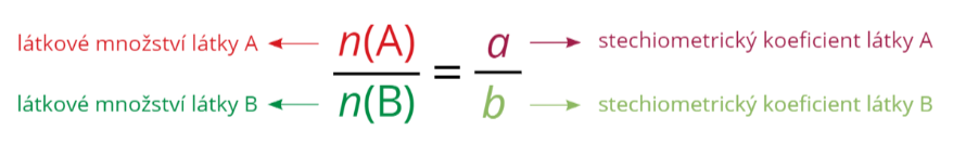 bude platit, že jejich stechiometrický poměr je \frac{a}{b}, ale pro další výpočty je přehlednější tento zápis: