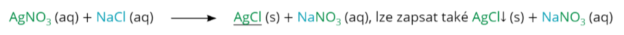 Často se také můžeš setkat s tzv. iontovým zápisem rovnice. Ten bere v potaz pouze ty ionty, které jsou důležité pro vznik sraženiny: