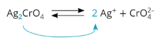 \( K=\frac{\left[\mathrm{Ag}^{+}\right]^{2}}{\left[\mathrm{CrO}_{4}^{2-}\right]}=\frac{2}{1} \rightarrow\left[\mathrm{Ag}^{+}\right]=2 \cdot\left[\mathrm{CrO}_{4}^{2-}\right] \)