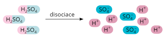 U silných kyselin (jako jsou kyselina sírová, chlorovodíková, dusičná...) zpravidla dochází k odštěpení všech protonů ze všech molekul kyseliny v roztoku, tedy k úplné disociaci. Podobně u silných zásad (hydroxid sodný, draselný, cesný...) dochází k tomu, že všechny molekuly zásady v roztoku odštěpují hydroxidový anion. Všimni si, že kyselina sírová odštěpuje dva protony - jedná se totiž o dvojsytnou kyselinu.