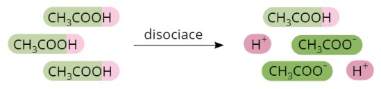 Slabé kyseliny se od silných liší tím, že disociují jen částečně, tedy ne všechny, ale jen určité množství molekul kyseliny odštěpí svůj proton (vodíkový kation). A samozřejmě i u slabých zásad platí, že ne všechny molekuly zásady proton přijmou.