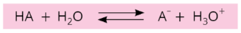 Disociaci obecné kyseliny HA můžeš popsat rovnicí: