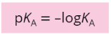 V praxi se běžně místo hodnoty K_{\mathrm{A}} používá hodnota \mathrm{p} K_{\mathrm{A}^{\prime}} což je záporný logaritmus K_{\mathrm{A}}. Zde ale platí, že se zvyšující sílou kyseliny klesá \mathrm{p} K_{\mathrm{A}}.
