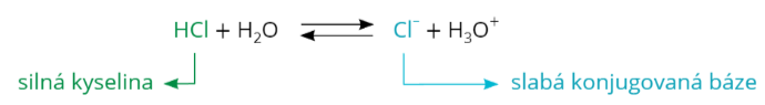 U konjugovaných párů platí, že reakce bude probíhat od silného ke slabému, takže například předchozí reakce bude mít rovnováhu posunutou výrazně k produktům a kyselina chlorovodíková se v roztoku bude vyskytovat takřka výhradně jako chloridový anion.