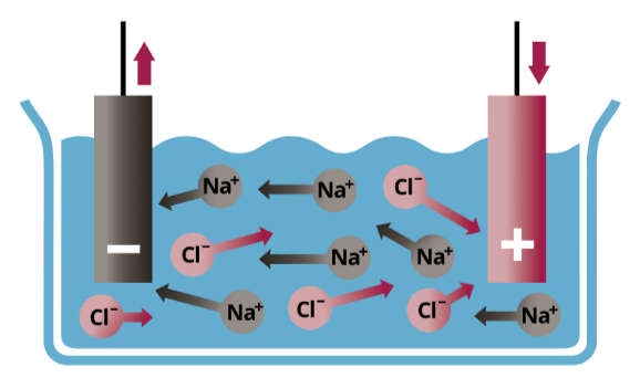 A protože elektrody jsou obvykle přidělané na pevno, musejí se pohybovat ionty v roztoku. Elektrický proud do roztoku vstupuje přes anodu, která má tím pádem kladný náboj, a odchází přes katodu, která má záporný náboj. Z logiky věci se tedy budou kladně nabité kationty přesouvat směrem ke katodě, zatímco záporně nabité anionty poputují směrem k anodě. To, jak rychle se budou pohybovat, záleží na tom, jak silný náboj ionty mají, jak jsou velké nebo jak velký jde do roztoku proud.