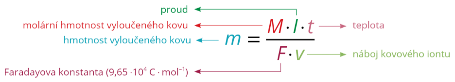 Vypočítat množství vyloučeného kovu na elektrodě lze pomocí vzorce: