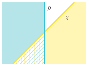 Existují čtyři možnosti, jak vytvořit různý průnik dvou polorovin s hraničními přímkami p a q.