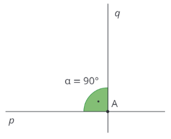 Kolmé přímky jsou takové přímky, které svírají úhel 90° (pravý úhel). Bod, kde se tyto dvě přímky protínají, se nazývá pata kolmice. Pata kolmice se bude později používat při sestrojování trojúhelníku. Pokud jsou přímky p a q na sebe kolmé, značí se jako p \perp q (čti: „přímka p je kolmá na přímku q“).