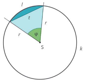 Další část kruhu se nazývá kruhová úseč. To je část kruhové výseče, která je opět vymezena úhlem \varphi a protíná ji tětiva t. Tvar kruhové úseče připomíná luk v lukostřelbě.