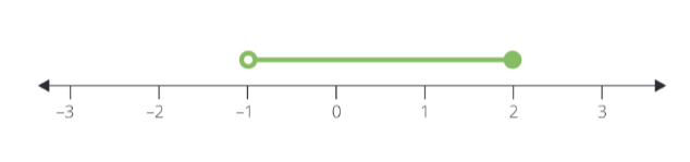 L'intervalle demi-fermé à droite (également demi-fermé à gauche, cela dépend du point de vue) est un intervalle fermé à droite (une parenthèse aiguë indique que le point extrême fait partie de l'intervalle) et ouvert à gauche (une parenthèse ronde indique que le point extrême ne fait pas partie de l'intervalle), par ex. I'intervalle (-1 ; 2 ).