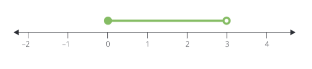 Tu peux évidemment tracer ce type d'intervalle sur l'axe numérique. Le point extrême limitant l'intervalle à gauche fait partie de l'intervalle (et est donc représenté sur l'axe numérique par un cercle plein), tandis que le point extrême qui limite l'intervalle de droite n'en fait pas partie (et est donc représenté sur l'axe par un cercle vide).