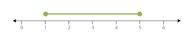 Diesen Intervalltyp kannst du auf eine Zahlengerade darstellen. Beide Grenzpunkte markierst du mit einem ausgefülltem Kreis, weil sie in den Intervall gehören, was die spitze klammer aufzeigt \rightarrow\langle 1 ; 5\rangle. Falls die Punkte nicht zum Intervall gehören sollten, würde man runde Klammern verwenden und auf der Zahlengerade sie mit leeren Kreisen darstellen, aber dazu sage ich später mehr.