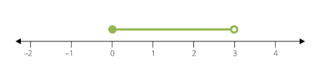 Das Intervall \langle0;3) schreibst du mit der charakteristischen Funktion so auf: 0 \leq x<3 (lese: „die Zahl x ist größer oder gleich null und gleichzeitig kleiner als drei”). Dort, wo die runde Klammer ist, nimmst du „<“ und bei der spitzen Klammer schreibst du „\leq”.
