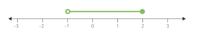 W postaci nierówności przedział (-1 ; 2\rangle zapisujemy tak -1<x\le2 (czytaj: „x jest większe od minus jeden, ale mniejsze lub równe dwa“). Jeżeli obok punktu znajduje się okrągły nawias to wtedy piszemy znak „<“, a jeżeli kwadratowy to „≤“.
